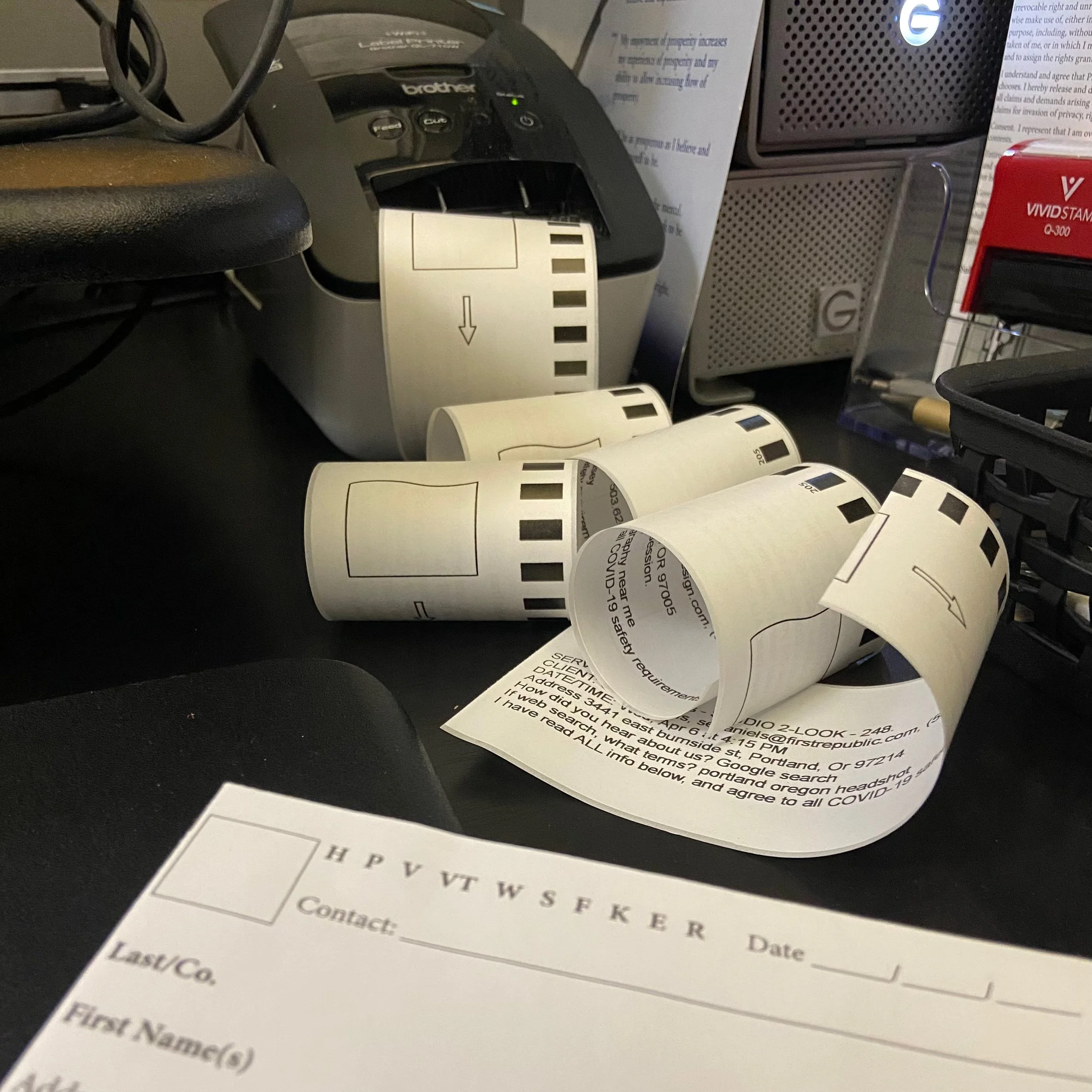 An entrepreneur’s Welcome Wagon - My busy label printer assuring me that the self-booking system kept busy while we were away.